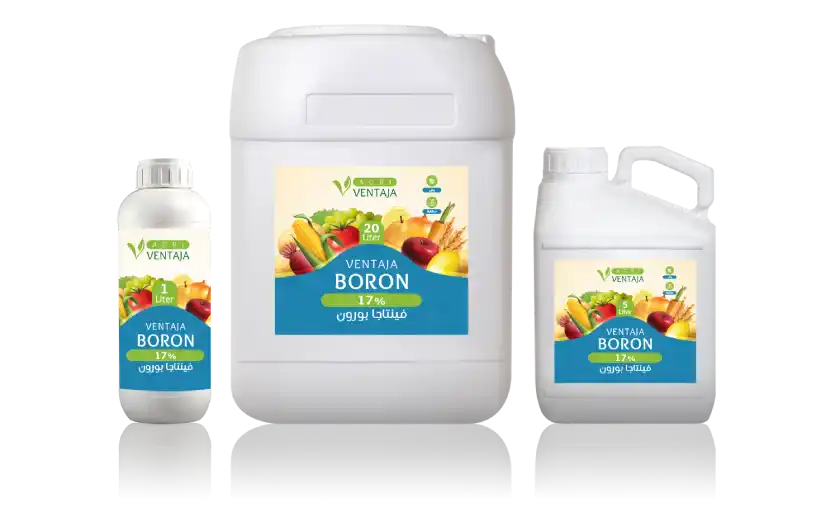 Ventaja Boron 17% A highly soluble liquid fertilizer rich in boron, an essential micronutrient for optimal plant growth and improved crop quality. It plays a vital role in enhancing flower pollination and fruit set, leading to a higher final yield. Boron also facilitates the transport of carbohydrates within the plant, contributing to better fruit development and overall quality. Additionally, it strengthens plant cell walls, increasing resistance to diseases and environmental stress. Boron is also crucial for efficient calcium uptake and distribution within the plant. Its excellent water solubility makes it ideal for both foliar applications and drip irrigation systems.