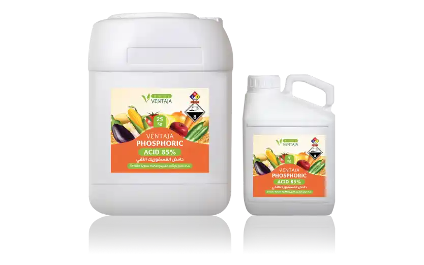 Ventaja Phosphoric Acid 85% is a liquid fertilizer with a high phosphorus concentration. Its primary application is to nourish and strengthen the root system during early growth stages, enhance flowering, and promote increased production in advanced stages. Additionally, it lowers soil alkalinity, thereby increasing the proportion of available elements and improving the plant's absorption capabilities. Ventaja Phosphoric Acid 85% also effectively minimizes algae growth and prevents calcium accumulation in irrigation pipe driblets. It can be applied through irrigation on a wide range of agricultural crops.